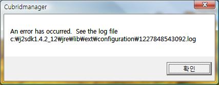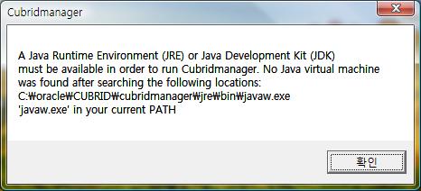<C:oracleCUBRIDcubridmanagercubridmanager.exe를 실행했을 때 나는 메세지 입니다.>